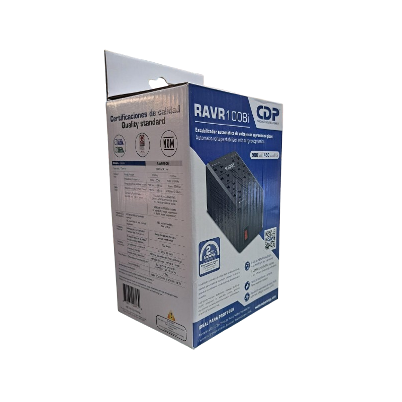 Estabilizador automático 900VA / 450 Wde voltaje con supresión de picos, ideal para proteger pantallas LED/LCD, cómputo, audio/video, impresoras,