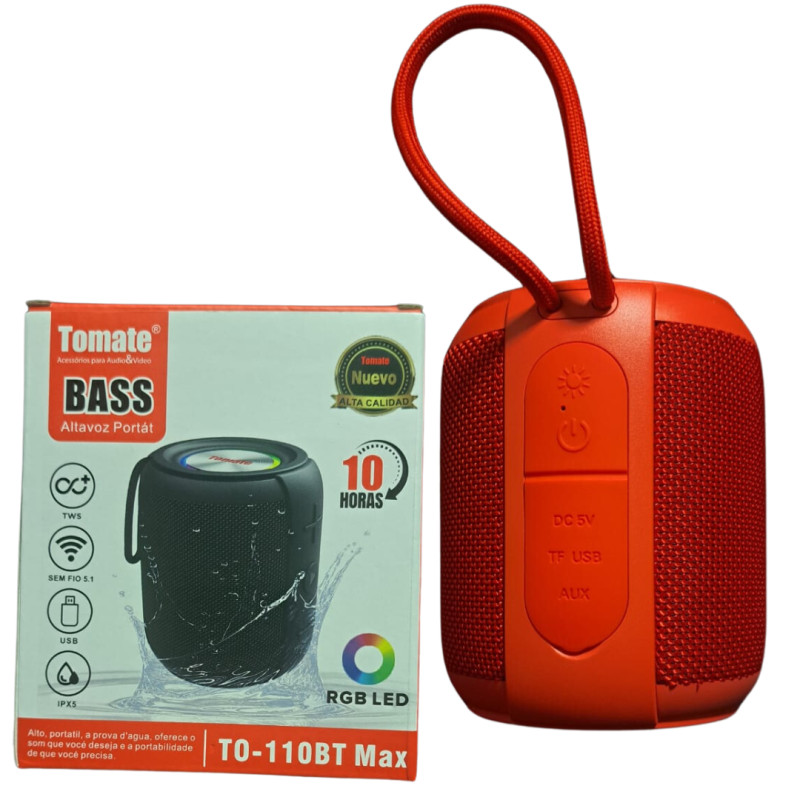 Modelo: TO-110BT Max Versión inalámbrica: V5.1 Distancia de transmisión: 10 m Potencia: DC 5V, 1A, Tipo C USB Energía: hasta 80 vatios Capacidad de la batería: 3000 mAh Tiempo de carga: aprox. 2 a 3 horas Duración hasta 10 horas Impedicultidad: 4 omios Sensibilidad: PLE 80dB Tipo del altavoz: 2"x1 Sala: 98.6x95.5x115,6mm (CxLxA)