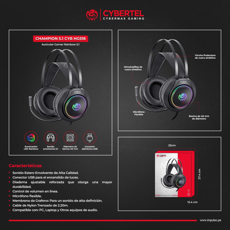 Cybertel / Auriculares / CYB - Cybermax Rainbow LED - USB 5.1