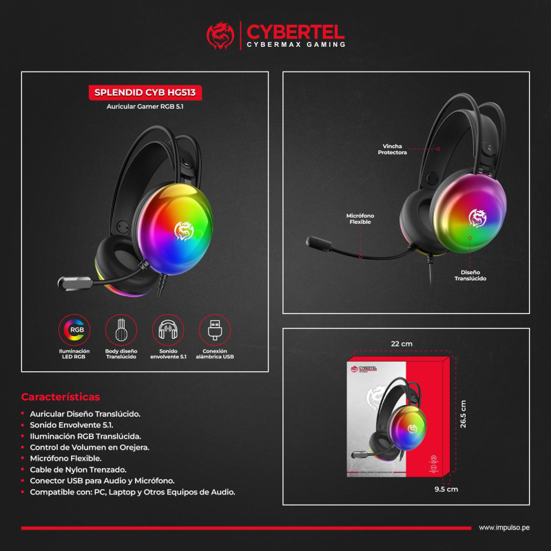 Cybertel / Auriculares / CYB - Cybermax RGB LED - USB 5.1