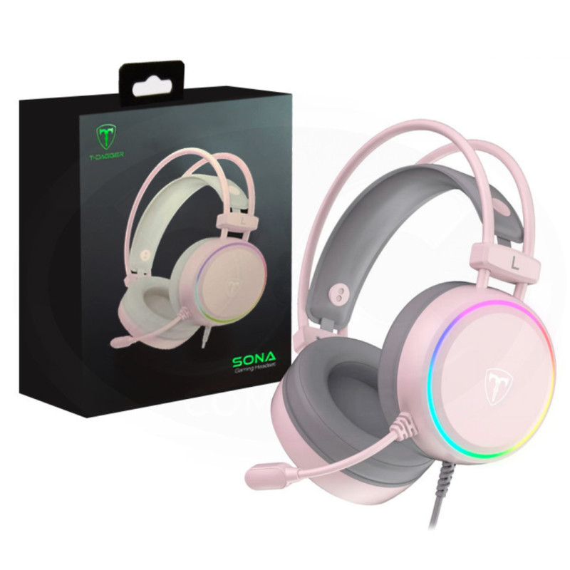 AUDÍFONO GAMER T-DAGGER SONA PINK T-RGH304P RGB