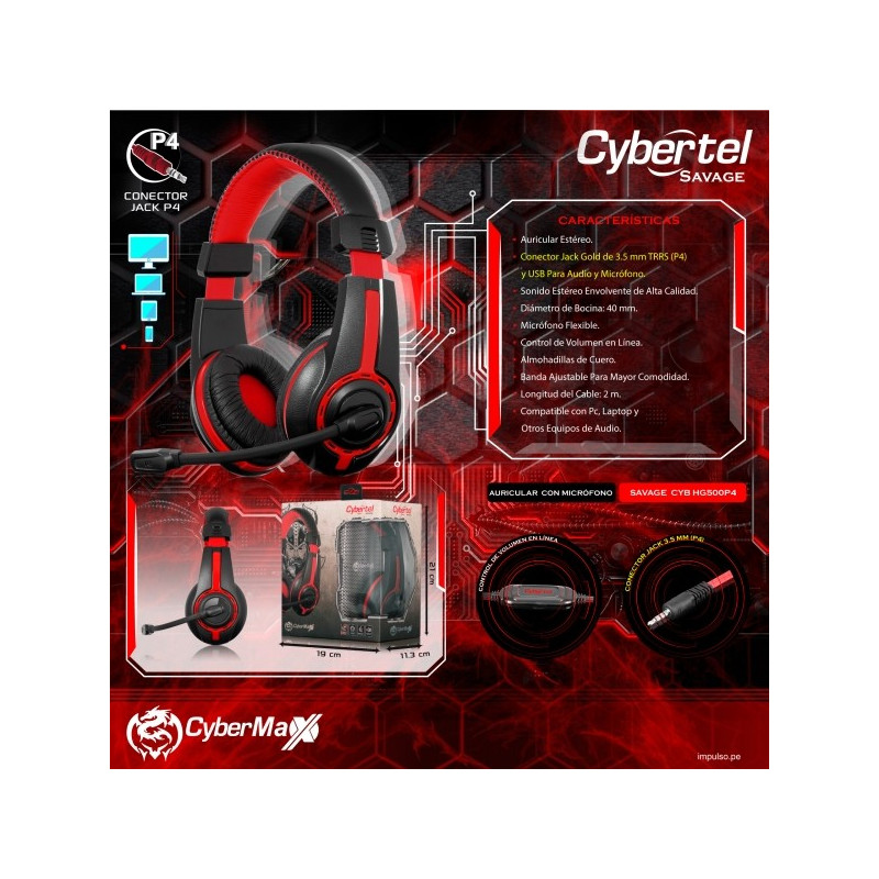 AUDIFONO GAMER CYBERTEL SAVAGE CYB H500P4