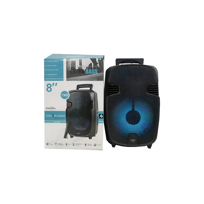 Con el parlante portátil Greatnice GTS-1248, lleva la música a donde quieras. Este altavoz compacto de 8 pulgadas combina un diseño práctico y una potente calidad de sonido, ideal para picnics, reuniones o simplemente disfrutar en casa. Su conectividad Bluetooth y Wi-Fi te permite reproducir tus canciones favoritas desde tu dispositivo sin complicaciones