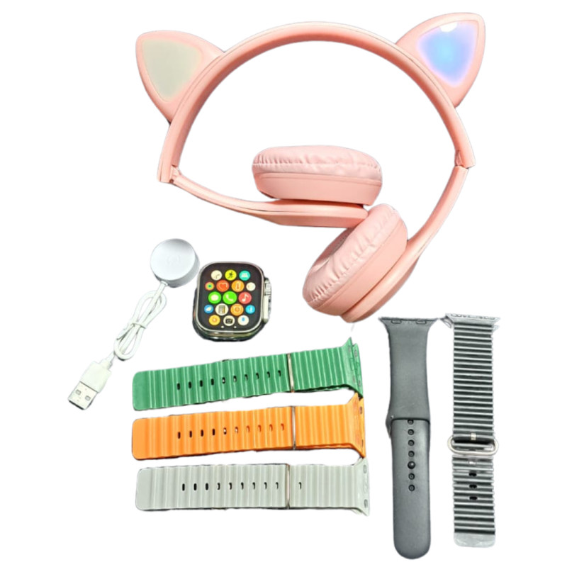 KIT TK702 AUDIFONO + SMAR WATCH ULTRA 2 BLUETOOTH CON 5 CORREAS