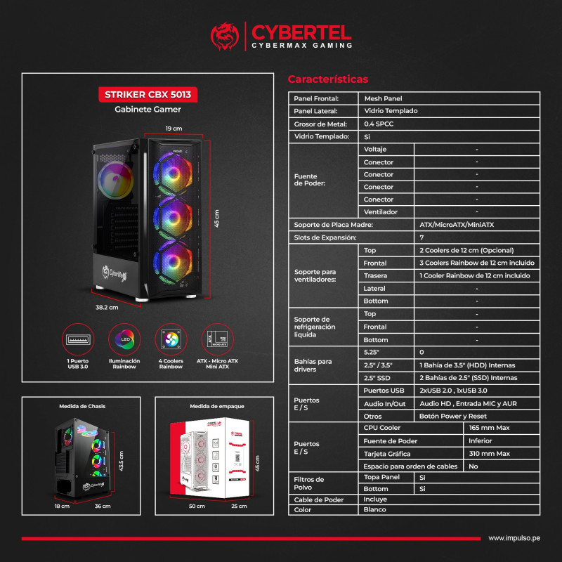 Cybertel / Gabinetes / CYB - Cybermax Rainbow 4 FAN ATX/MATX