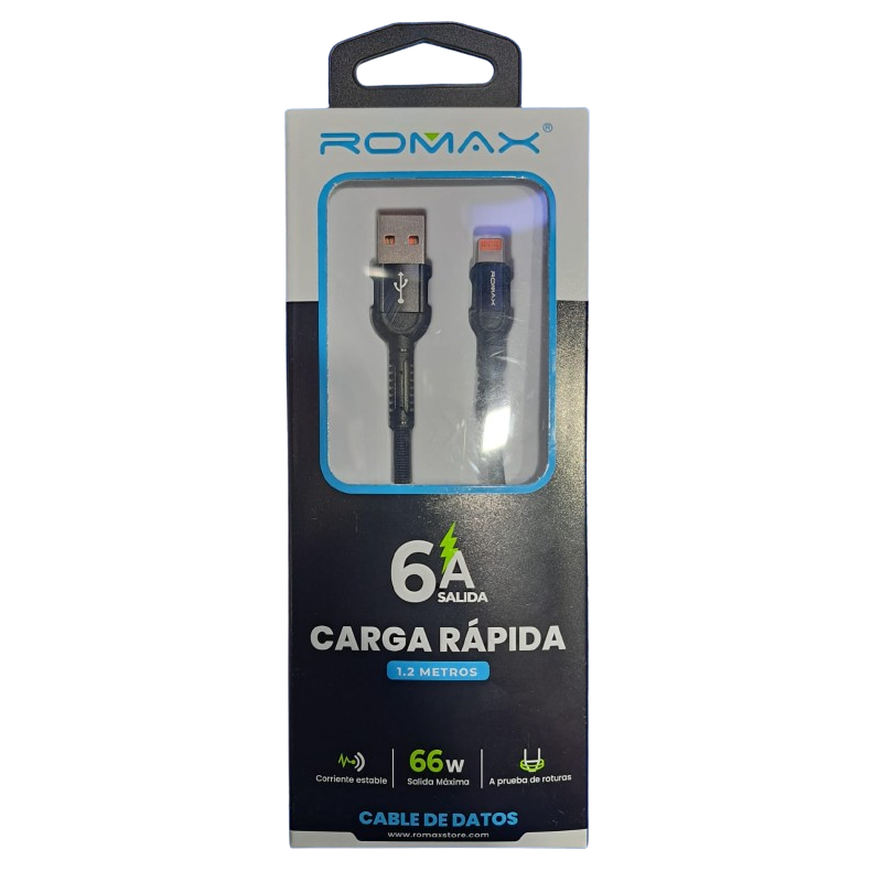 El cable de datos para iPhone de la marca Romax está diseñado con un revestimiento de nylon que garantiza durabilidad y resistencia al desgaste. Su construcción anti enrollamiento permite un uso práctico y sin complicaciones, evitando enredos que puedan afectar su funcionalidad. Este cable es ideal para quienes buscan un producto confiable y de alta calidad para la transferencia de datos y carga de sus dispositivos