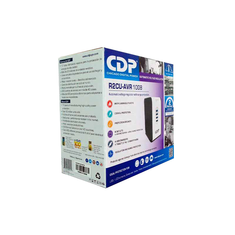 Estabilizador De Voltaje CDP R2CU-AVR 1008I 1000VA / 500W 8 Tomas De Salida 4 Puertos USB:
