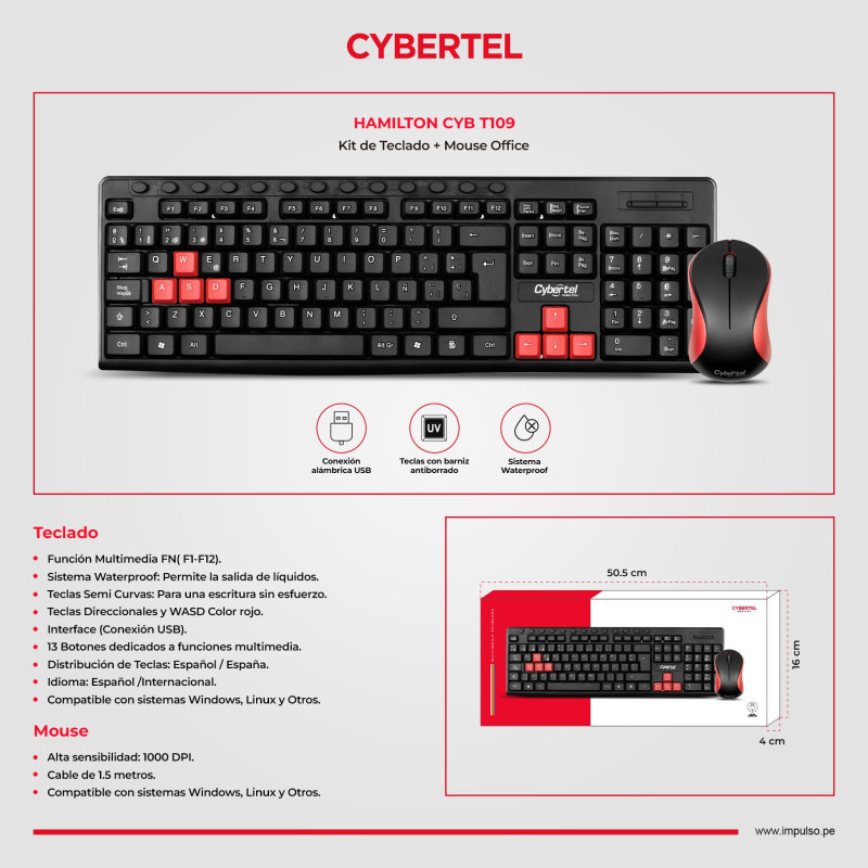 Cybertel / Computer Kit / CYB - Kit Alambrico - Teclado Multimedia + Mouse