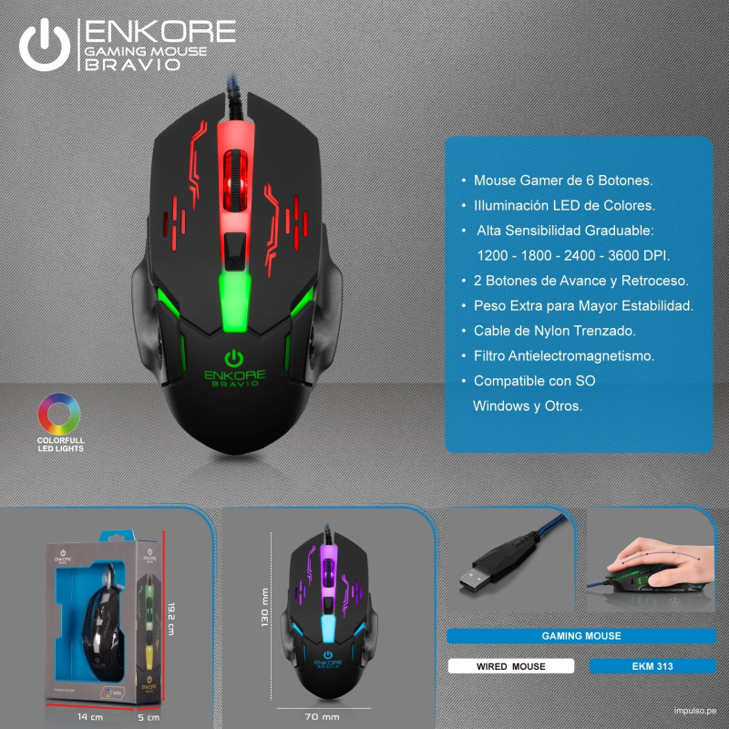 Alta Sensibilidad Graduable: 1200 - 1800 - 2400 - 3600 DPI.