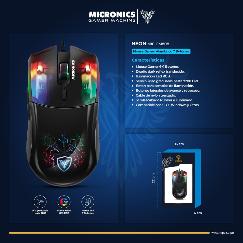 Micronics / Mouse / MIC - Gamer Machine RGB Cable - 7B - DPI 7200