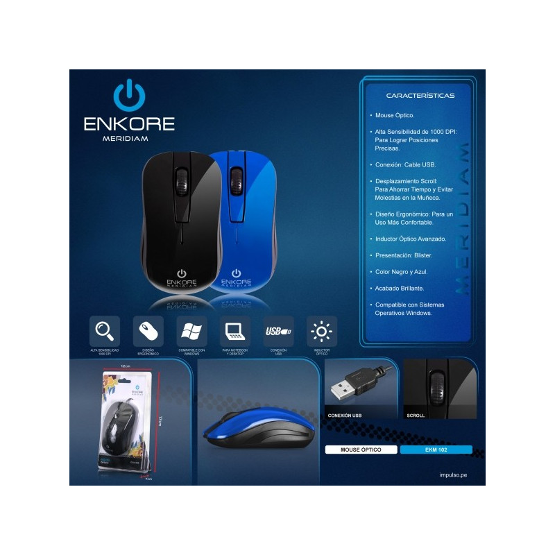MOUSE OPTICO ALAMBRICO ENKORE MERIDIAM EKM 102