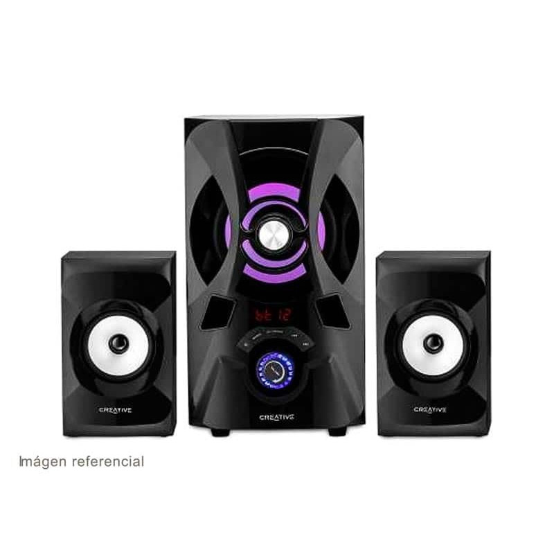 Potente sistema de altavoces Bluetooth con subwoofer para TV, ordenadores, portátiles. El sistema de altavoces más potente de la serie Creative SBS E2000, este completo sistema de altavoces 2.1 está configurado para cautivar a la audiencia con su increíble rendimiento de audio al tiempo que ofrece un amplio espectro de opciones de conectividad por cable: inalámbrica y en otras formas. Con el SBS E2900, transmita de forma inalámbrica a través de Bluetooth, escuche sus canales de radio FM favoritos: o reproduzca el audio de su elección directamente a través de USB o reproducción de tarjeta SD. Para la conectividad por cable, conecte su dispositivo a la entrada AUX-in de 3,5 mm disponible. Para colmo, también puede acceder fácilmente y cambiar la configuración de control de volumen y reproducción directamente en los altavoces, o personalizar la configuración de agudos y graves con el control remoto inalámbrico por infrarrojos incluido. El Creative SBS E2900 está diseñado para satisfacer su necesidad de un sistema de entretenimiento de audio de alto rendimiento y sin concesiones. Sistema de altavoces 2.1 con controladores de campo lejano. Potente sistema de altavoces 2.1 Bluetooth que ofrece un rendimiento de audio impresionante y fuerte con 60W RMS y hasta 120W de potencia máxima.Referencias específicas