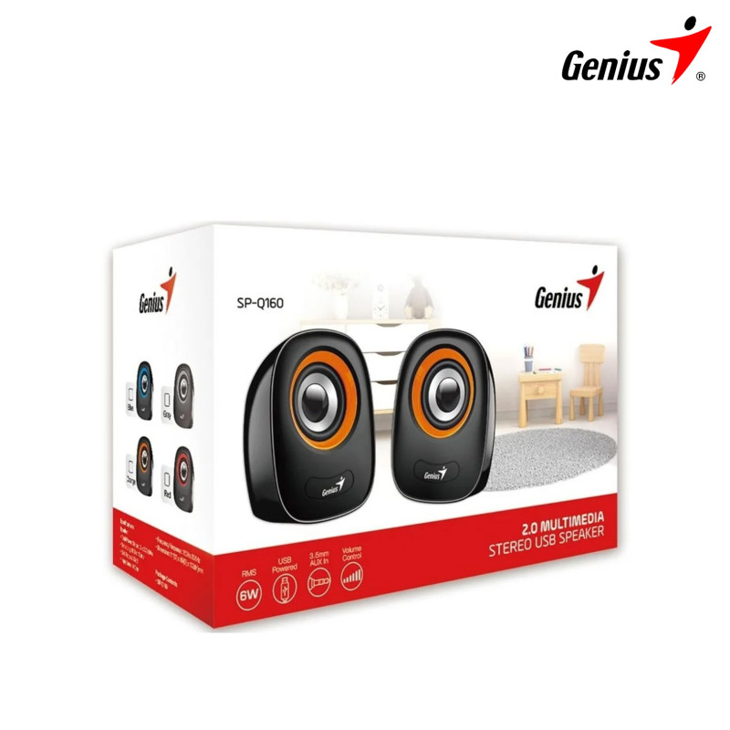 Los parlantes Genius SP-Q160 ofrecen un sonido estéreo claro y potente. Es compacto y con un diseño simpático para tu escritorio. Sonido: ofrece un sonido estéreo claro de alta calidad que llena la sala con control de volumen. Es perfecto para cualquier dispositivo con conector de audio de 3.5 mm.