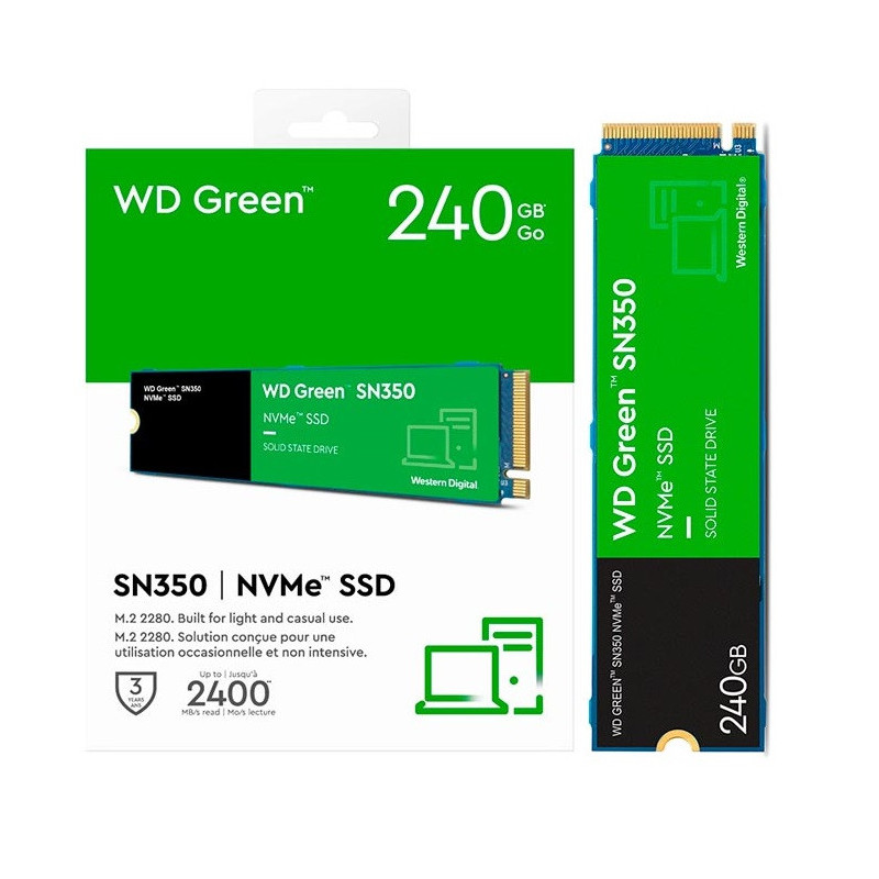 El disco SSD ™NVMe WD Green ™SN350 puede revitalizar su antigua computadora para el uso diario. Ya sea que esté en clase’, de compras, conversando o navegando en la web, este disco puede trabajar hasta cuatro veces más rápido2 que los discos SATA. Debido a que los SSD no tienen piezas móviles, ofrecen un diseño resistente a los impactos que permite proteger los datos importantes contra golpes y caídas accidentales. El factor de forma delgado M.2 2280 permite actualizar cualquier computadora que tenga una ranura NVMe de manera rápida y sencilla. Además, el panel de control descargable del SSD de Western Digital® le permite supervisar el estado de su disco para brindarle mayor tranquilidad.