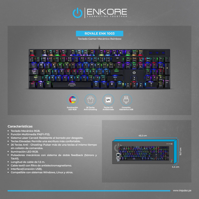 TECLADO MECANICO USB ENKORE ROYALE ENK1003 GAMER RGB