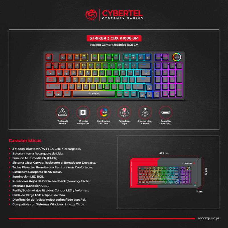 Cybertel / Teclados / CBX - Cybermax 3M: BT+ Wireless + Rechargeable