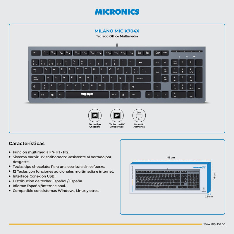 12 Teclas con Funciones Adicionales Multimedia e Internet.