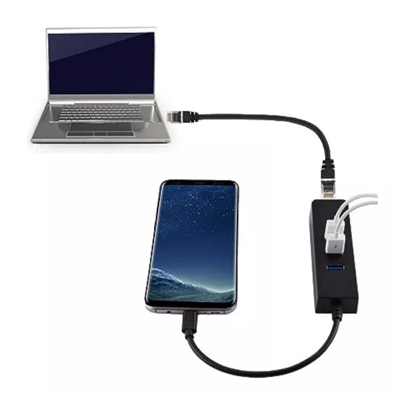 Modelo del cable: Tipo C a rj45 + hub 3 puertos